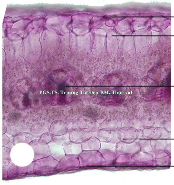 Lá: Gân giữa: mặt trên lõm, mặt dưới lồi. Tế bào biểu bì hình chữ nhật, kích thước không đều. Tế bào biểu bì trên lớn hơn tế bào biểu bì dưới. Biểu bì dưới có lông che chở đơn bào. Lớp cutin mỏng, có răng cưa. Tế bào mô mềm vỏ hình bầu dục hay hơi đa giác, kích thước không đều xếp chừa khuyết nhỏ, chứa tinh bột. Các bó libe gỗ có thể xếp thành hình vòng cung hoặc bị gián đoạn thành 3 cụm. Đám tế bào có vách dày bằng cellulose ở trên libe. Libe 2, gỗ 2 ít phát triển. Tinh bột và tinh thể calci oxalat hình cầu gai trong mô mềm xung quanh các bó dẫn. Phiến lá: tế bào biểu bì trên và biểu bì dưới hình đa giác, có kích thước gần bằng nhau. Dưới lớp biểu bì trên là một lớp tế bào mô mềm hình chữ nhật kích thước to. Kế đến là 3 lớp mô mềm giậu có nhiều hạt lục lạp. Trong mô mềm giậu có các bó dẫn bị cắt ngang thành một hàng. Mỗi bó dẫn này được bao bởi 3-5 tế bào to, kích thước không đều, có chứa lục lạp và tinh bột. Trên biểu bì dưới là những tế bào mô mềm hình bầu dục kích thước to nhỏ khác nhau, xếp chừa khuyết to, chứa một số tinh thể calci oxalat hình cầu gai trong mô mềm.