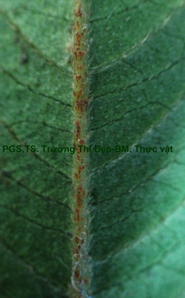 Vi phẫu lõm hình chữ V ở mặt trên, mặt dưới lồi tròn. Biểu bì 1 lớp tế bào hình chữ nhật hoặc bầu dục, kích thước không đều, lớp cutin có răng cưa, nhiều lông che chở đa bào. Cụm sợi 3-5 lớp tế bào hình đa giác to hay nhỏ vách dày hay mỏng, thường xếp thành cụm dưới chân lông che chở. Mô dày góc, 4-5 lớp, tế bào hình bầu dục, kích thước không đều. Mô mềm đạo, tế bào hình bầu dục, kích thước không đều. Hệ thống dẫn gồm gỗ ở trên libe ở dưới xếp thành nhiều cung libe gỗ, cung chính ở giữa to nhất, các cung phụ nhỏ hơn xếp ở 2 bên cung chính và 1 hàng dọc theo biểu bì trên. Libe trong có ở cung chính và hai cung phụ ở hai bên. Lá Gân giữa