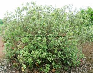 Biểu bì trên tế bào hình tam giác khá đều, lớp cutin rất dày và phẳng; biểu bì dưới tế bào hình tam giác hay chữ nhật kích thước không đều, cutin dày, rất nhiều lông che chở đơn bào và lỗ khí. Mô giậu 2 lớp tế bào hình chữ nhật, dưới 1 tế bào biểu bì thường có 1-2 tế bào mô mềm giậu, lớp mô mềm giậu thứ nhất dài gần gấp đôi lớp thứ 2. Mô mềm khuyết tế bào có hình dạng và kích thước khác nhau, hình đa giác, bầu dục hoặc tròn. Trong thịt lá có nhiều bó gân phụ bị cắt ngang với gỗ ở trên libe ở dưới được nối với biểu bì trên và dưới bởi dãy tế bào hình đa giác hẹp, kích thước nhỏ, vách cellulose hay hóa mô cứng. Tinh thể calci oxalat hình cầu gai nhiều trong mô mềm giậu và mô mềm khuyết. Túi tiết ly bào trong mô mềm thịt lá. Cuống lá